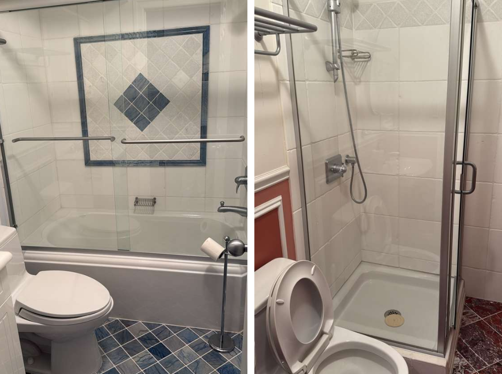 In the bathrooms, special attention was given to moisture-prone and high-touch areas. The glass shower panels were carefully cleaned and polished to remove buildup and water marks, leaving them crystal clear.