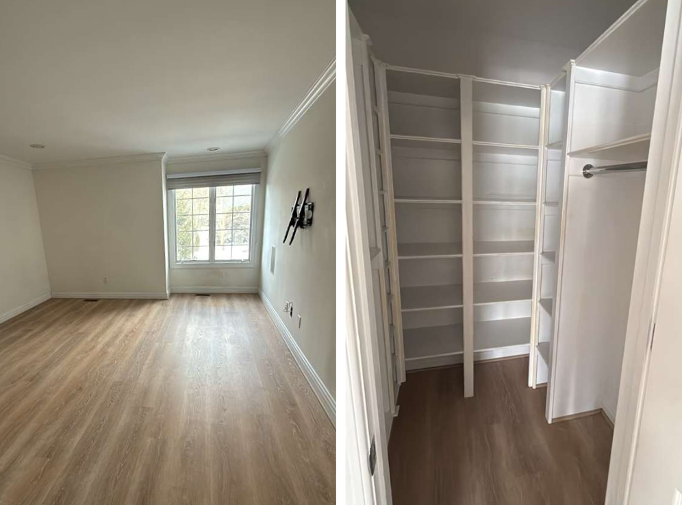 The walk-in closet was also fully detailed. Shelving units were wiped down to remove accumulated dust, corners were cleaned carefully, and flooring was left spotless. Even less frequently used areas were treated with the same level of care and precision.